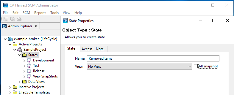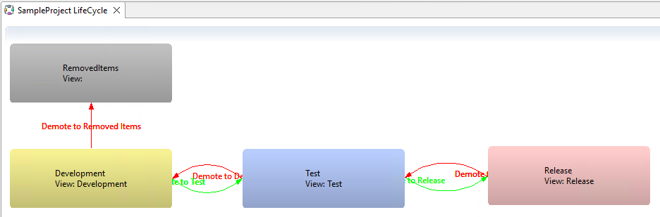 In Administrator Tool, ensure you have configured promote and demote processes that sequentially pass through every state, both going up and coming down. Include a “Demote” process from your first state to the new state created in Step 1. Also ensure that every state has a “Switch Package” process. To get a graphical representation of your states and the promote/demote paths available, you can right click on the project name and select “View Project Lifecycle”.