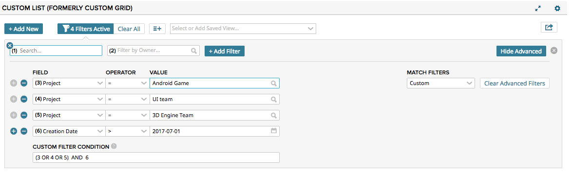 This issue can occur if you are using a custom filter condition along with advanced filtering, and have grouping parentheses. To fix this issue, make sure there are no spaces between the parentheses and the numbers.