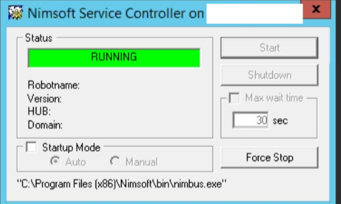 The Nimsoft service controller does not show robot name, version, hub and domain.
