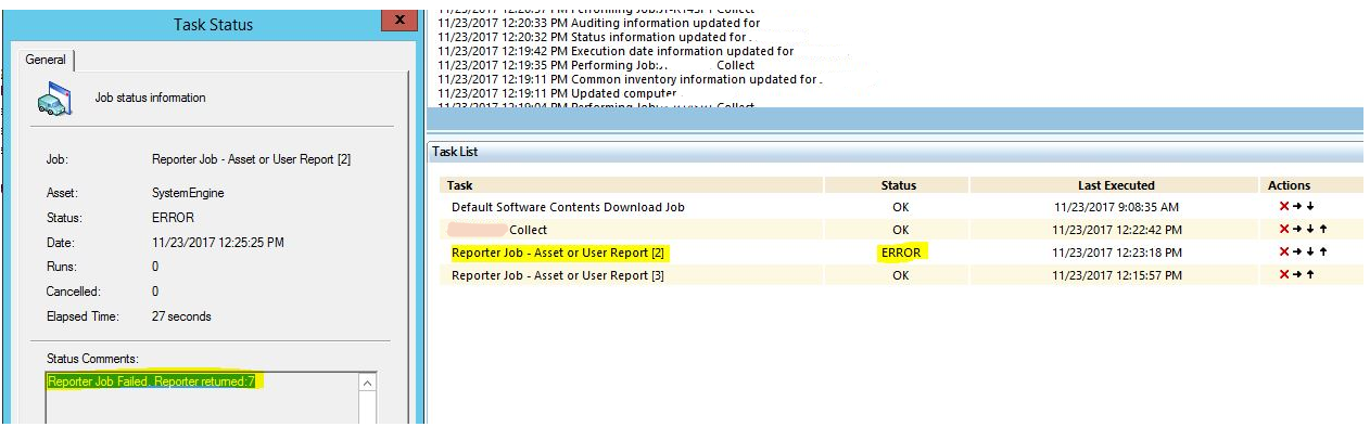 Reporter Job Failed. Reporter returned:7