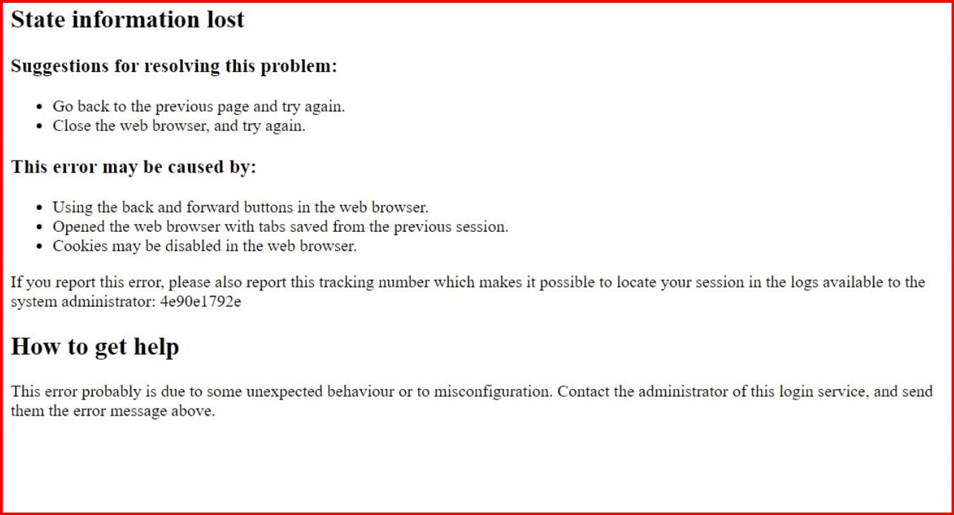 But after the authentication occurs, when the UI returns back to the CA PAM then a page with errors appears.