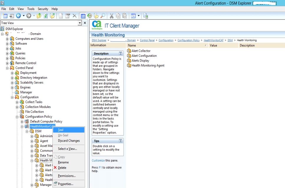 3. Drill down to DSM, Health Monitoring, Health Monitoring Agent.