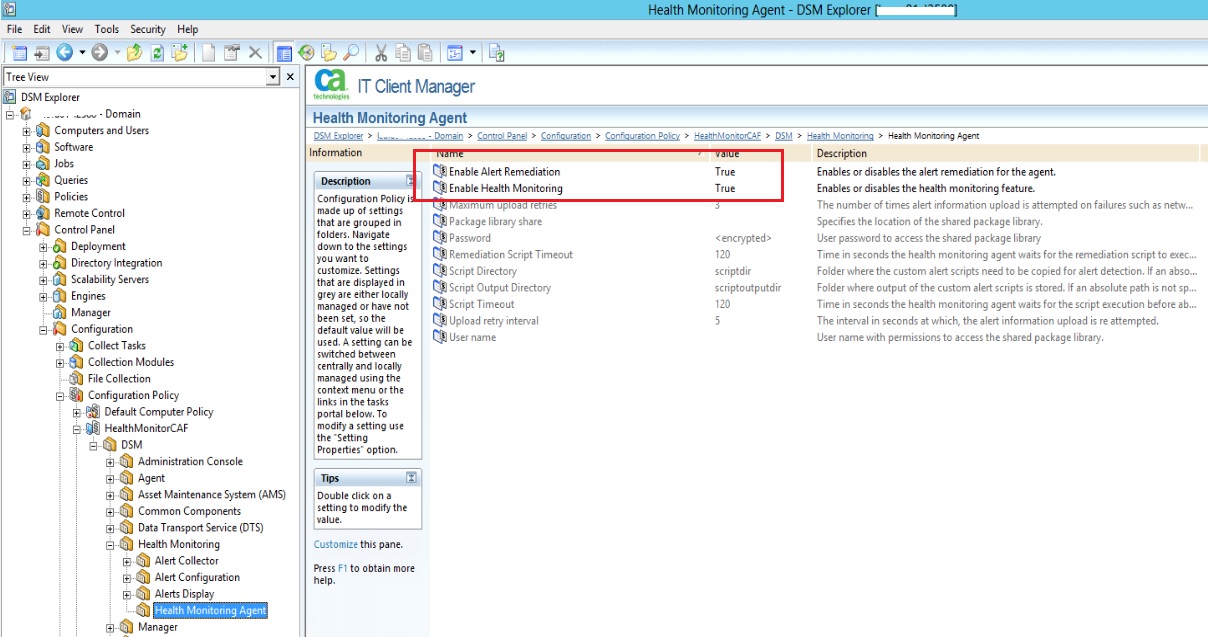 How to Configure and Monitor the CA Client Automation Infrastructure Health-DSM