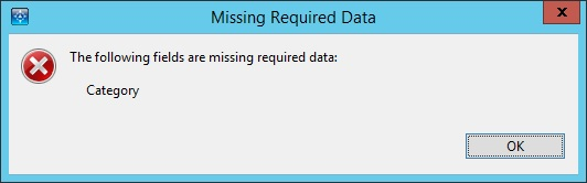 After successfully importing the form type xml file, the change will take effect immediately. No need to restart the broker. To complete the example, now, any time a user tries to save a Defect Tracking form, they will get an error message if the Category field has not been completed: