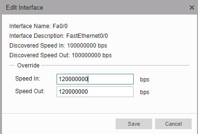 In the example we are Overriding the speed to set a speed of 120000000 bps (120 Mbps) instead of the discovered 100000000 bps (100 Mbps):