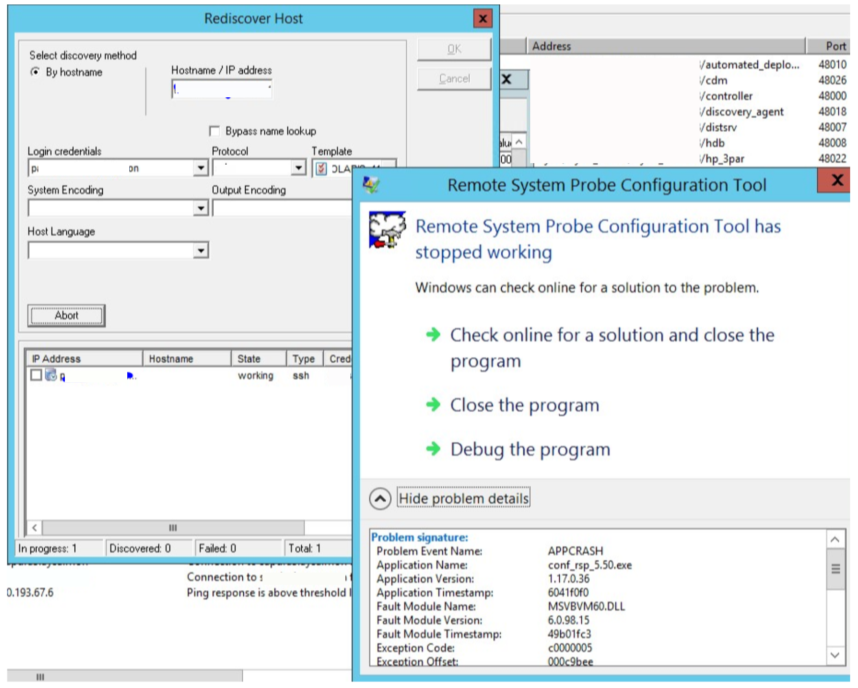 The discovery profile in the rsp probe (wmi protocol is used), sometimes causes the crash of the probe.