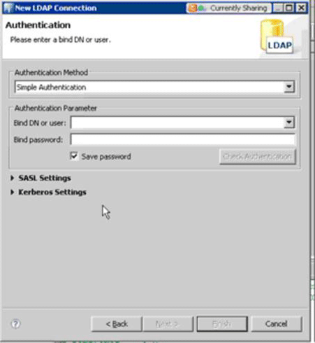 If there are problems with LDAP authentication, test the connection using a 3rd party utility like Apache Directory Studio or LDAP Browser.