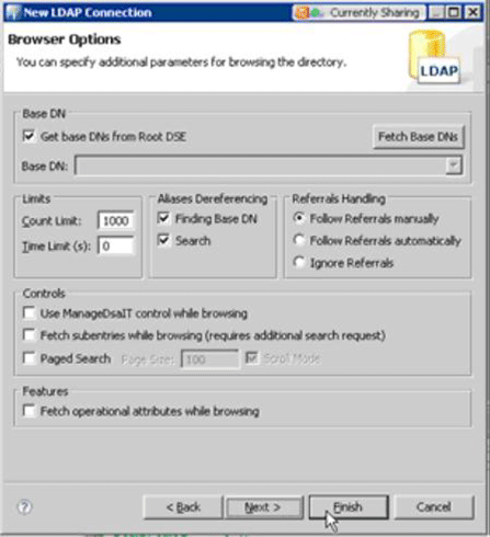 An LDAP browser is handy for testing connectivity to the LDAP directory and interrogating its structure.