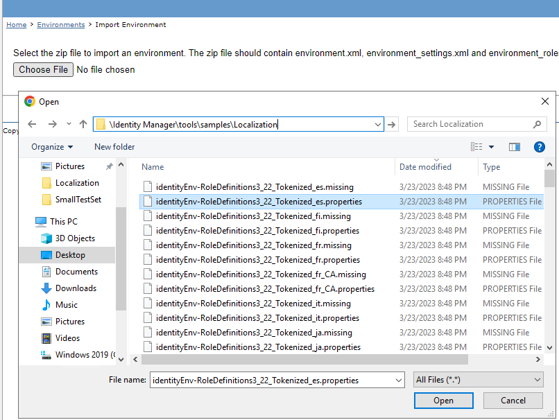 Navigate to the Identity Manager Management Console and upload the tokenized English Rolesdefinition.xml first and then any other language that you would require into your environment.