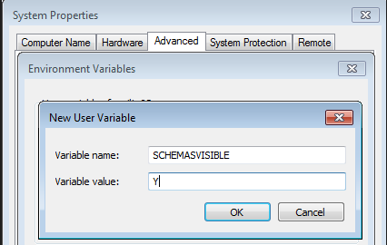 Option 3. Add an environment variable called SCHEMASVISIBLE