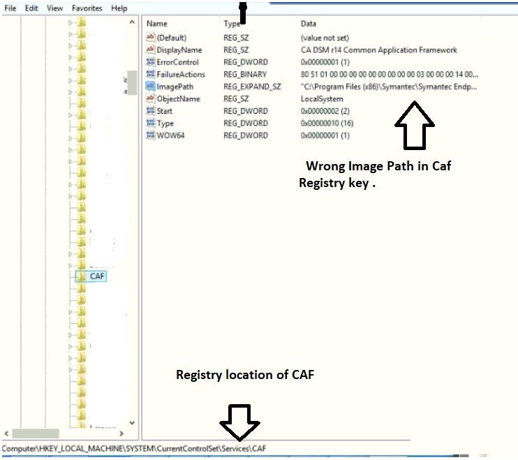2. Go to Registry Computer\HKEY_LOCAL_MACHINE\SYSTEM\CurrentControlSet\Services\caf