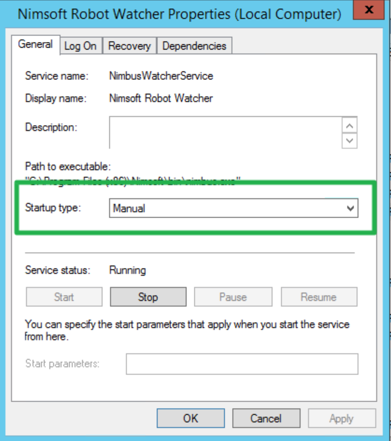1. Set startup type of "Nimsoft Robot Watcher" service to "Manual".