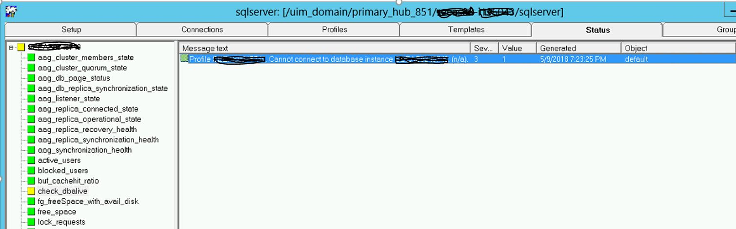 Alert: Profile SQL_SERV_INST_NAME, Cannot connect to database instance SQL_SERV_INST_NAME: (n/a).