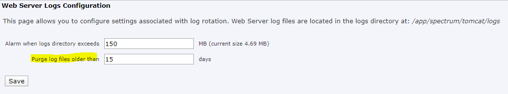 4. From here, you can set a value to purge log files older than "X" number of days.