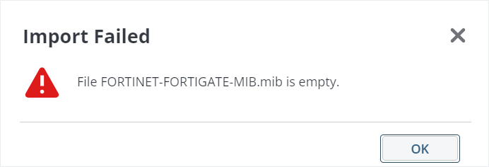You can no longer import the vendor's MIB in DX NetOps Performance Management. If you try, you will get this error: Import Failed File xxxxx.mib is empty.