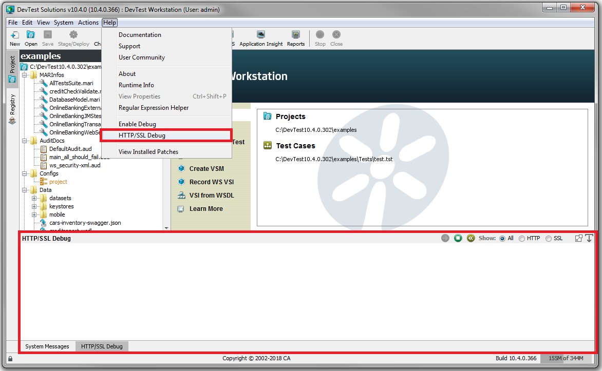 1. In DevTest Workstation use the HTTP/SSL Debug Viewer feature to observe the details of HTTP and SSL activity, or use a java argument to enable SSL debugging and collect more information in the log files for a specific component.