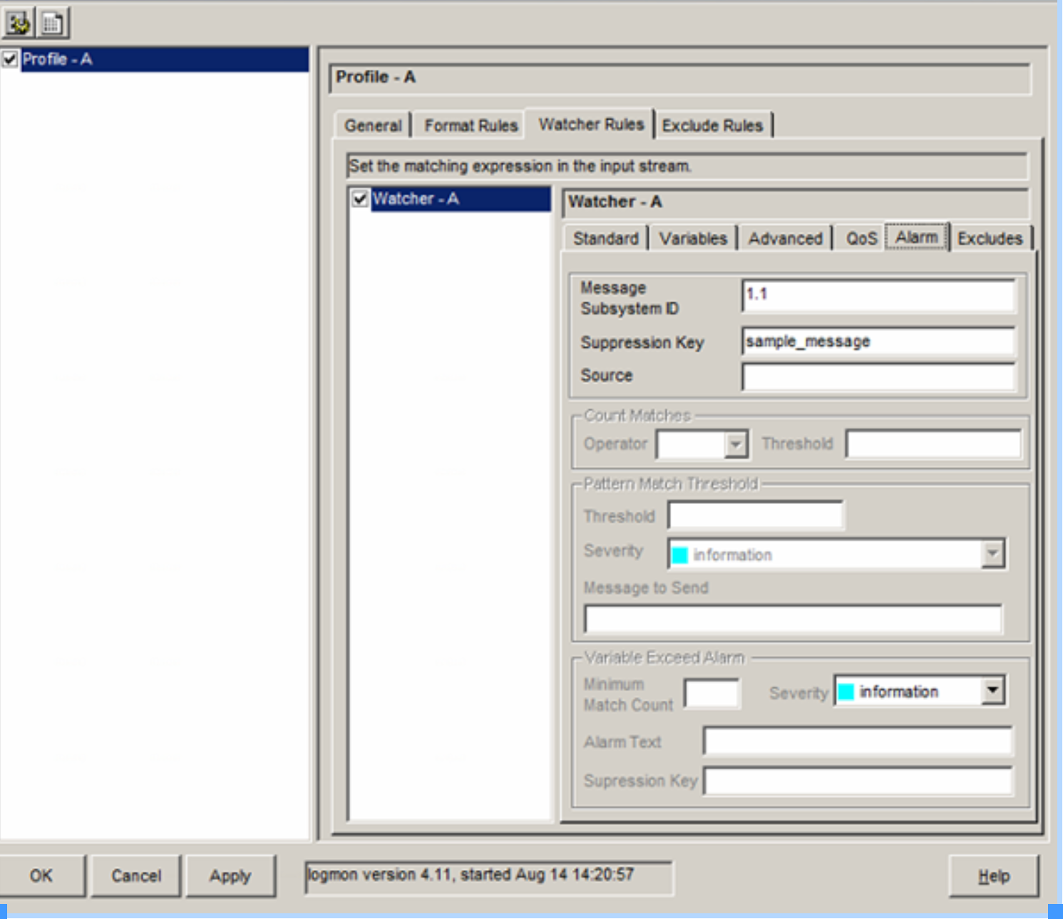 2. Create a profile for the sample message A with “warning” severity and set Message Subsystem ID and Suppression Key