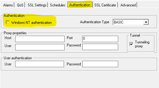 Verify the type of security that is required to connect to the website. The url_response probe does not support ADFS authentication (Active Directory Federation Services). The probe does support Windows NT authentication along with the following authentication types: