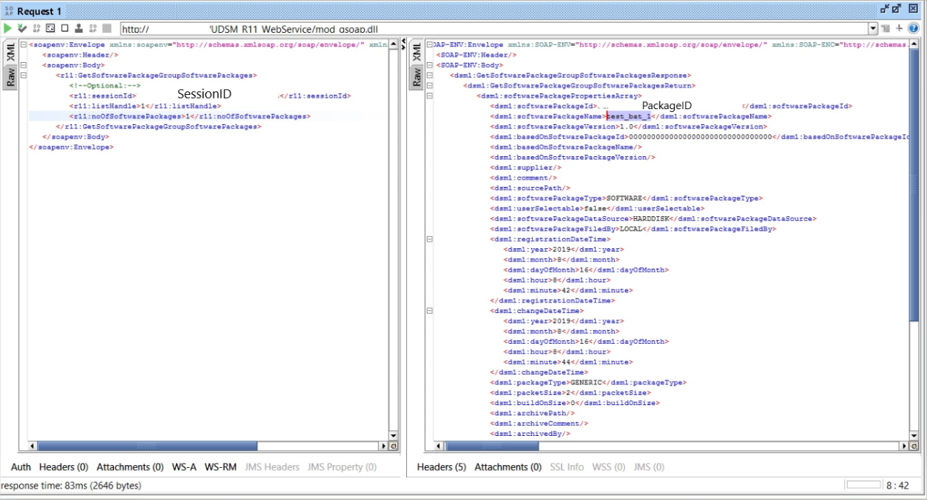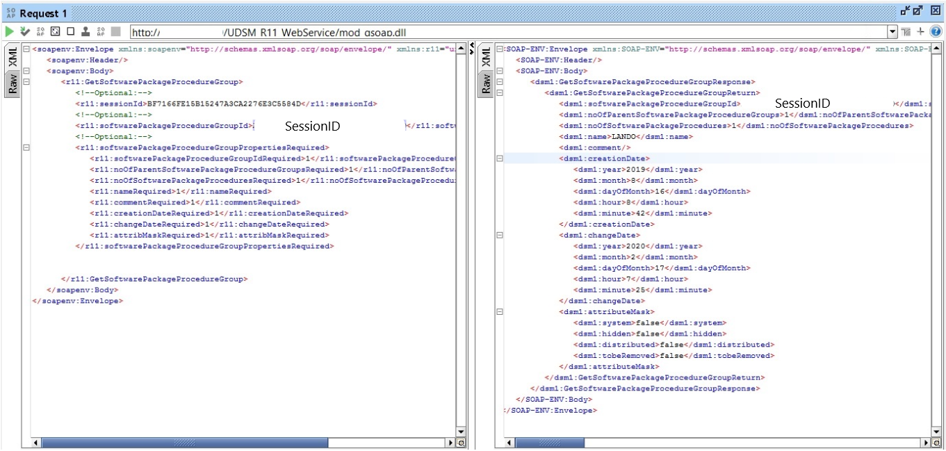 - As a way to check if the ID obtained from previous call is correct, the method "GetSoftwarePackageProcedureGroup" using this ID, the result should give few detail of the group: