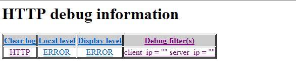 Selecting Submit to save the debug filter returns the browser to the main HTTP debug log page.