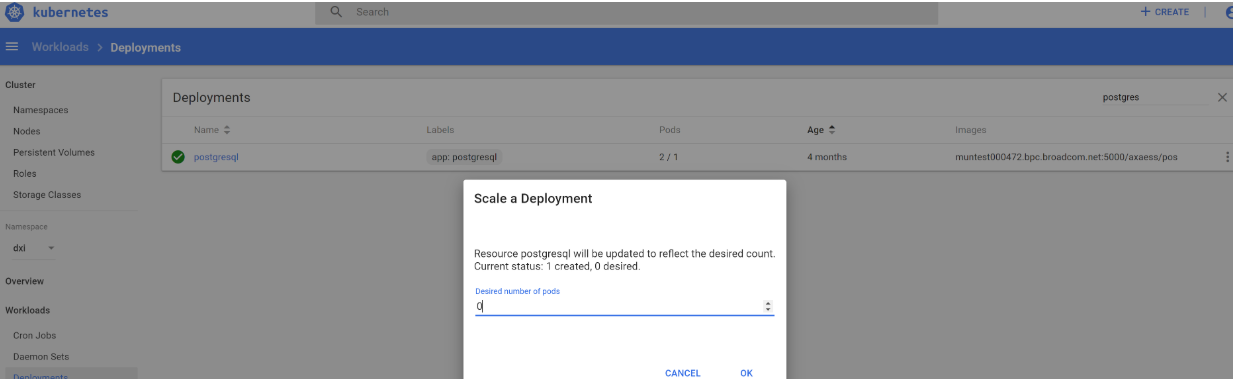 Postgres pod is not running and you cannot ssh the pod: