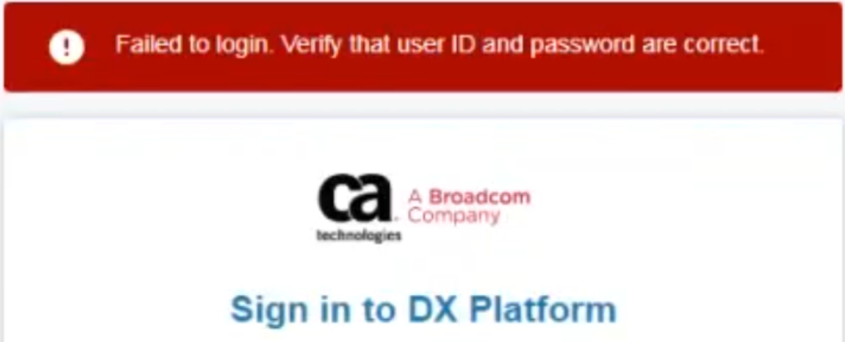 “Failed to login. Verify that user ID and password are correct”
