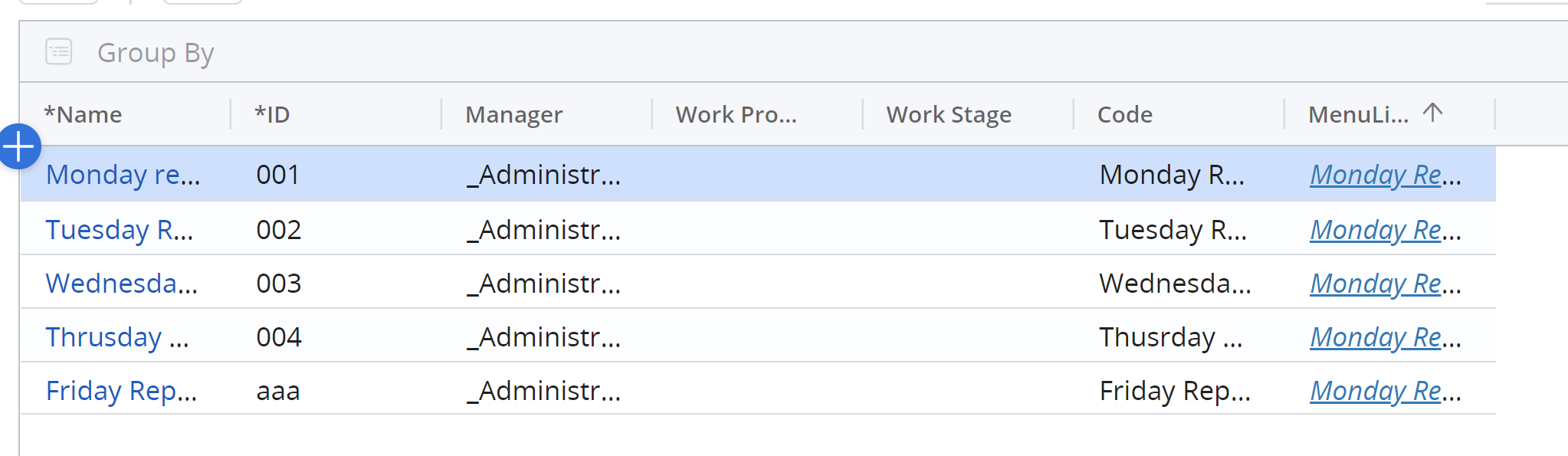 9. Go to the Grid view and add the Code and MenuLink to the view