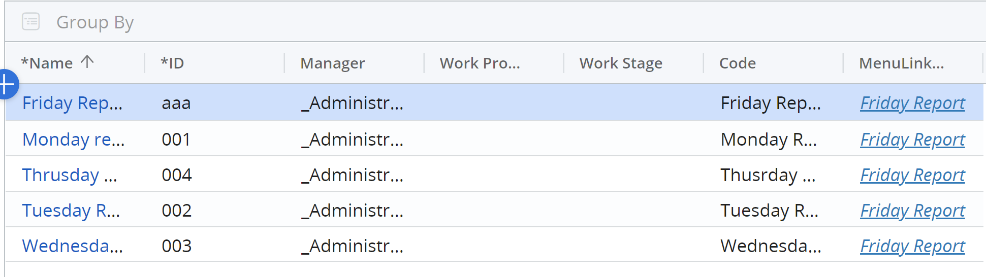 Expected Results: The links display as per code: Monday Report, Tuesday Report