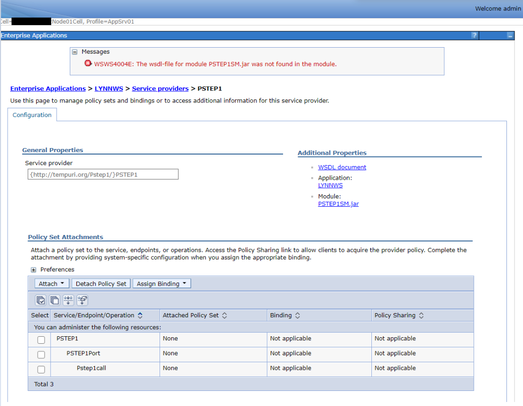 When click on "WSDL document" see error "WSWS4004E: The wsdl-file for module PSTEP1SM.jar was not found in the module."