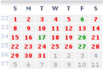 The output will be like below for each Month, when NO Thursday is unauthorized either via General Calendar Holiday or via Rule authorization mask