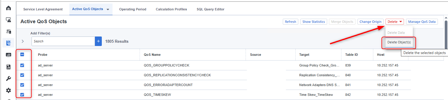 Delete QoS Objects and metrics data from DX UIM