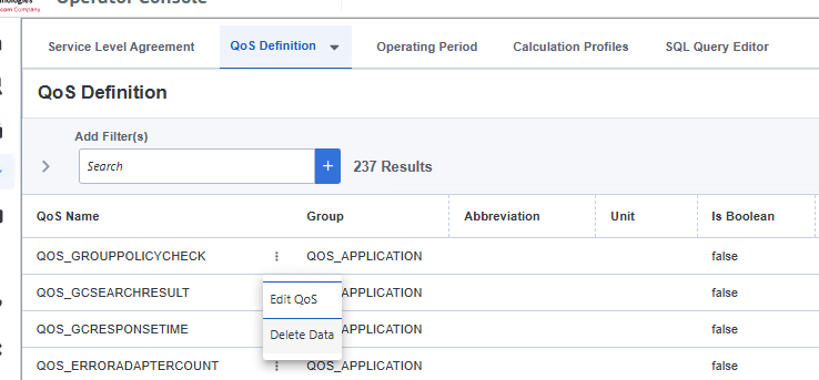 For removing the QOS_DEFINITION select  QOS Definition and then 3 dot menu > Delete Data.