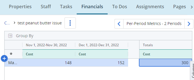 Actual Results: The 'Totals' (sum of periods) amount is 300 ; it is missing the 300 amount from the last period and spreading it across the 2 periods.