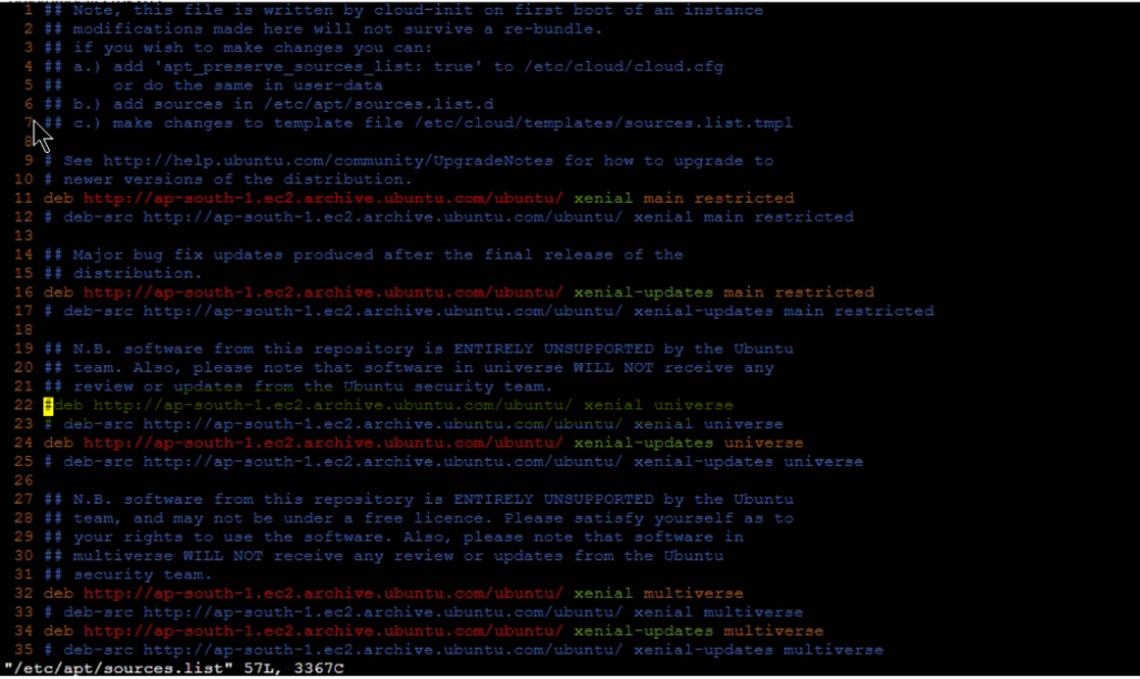 Comment the line : deb http://ap-south-1.ec2.archive.ubuntu.com/ubuntu/ xenial universe as follows: