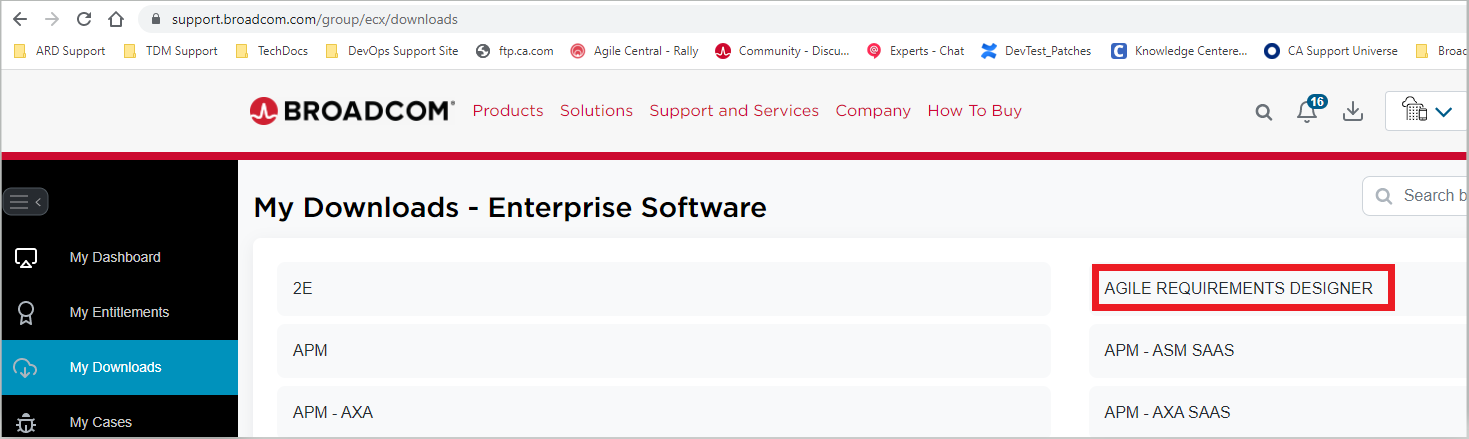 - Select "My Downloads" > "Agile Requirements Designer"