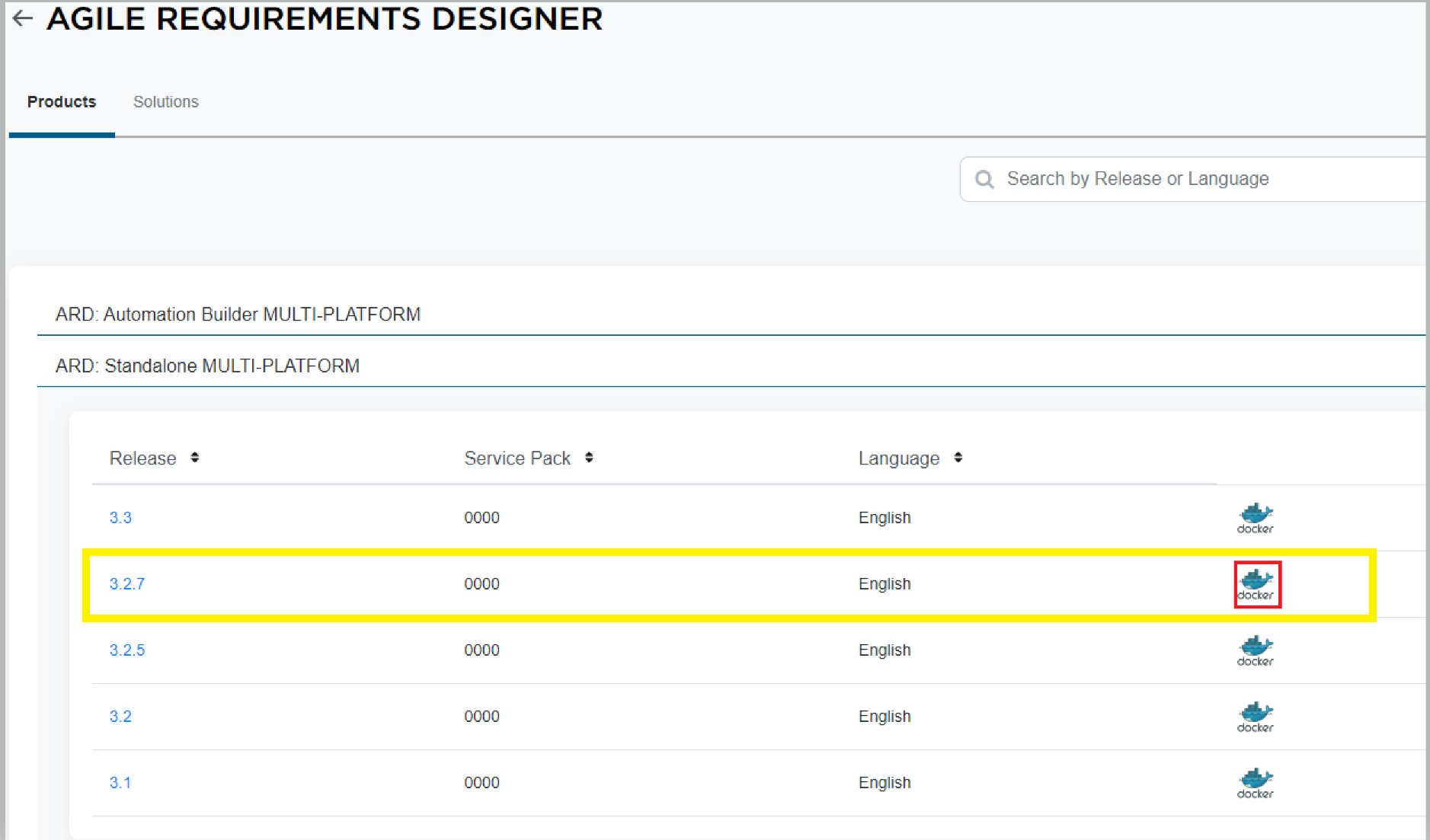 - Click the Docker icon that correlates to ARD 3.2.7 release.