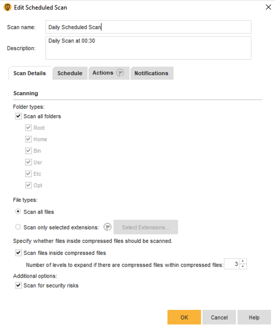Upon restart of the agent service, if the "Retry Missed Schedule Scans" option is selected;