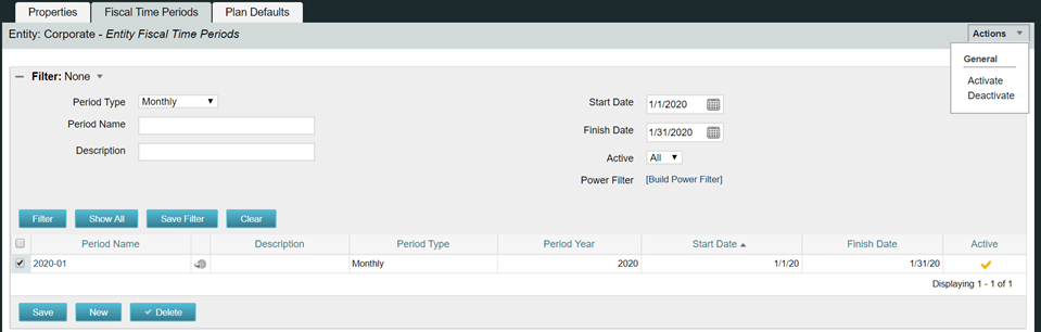 Next, ensure the fiscal time period created is activated by selecting and using action > activate