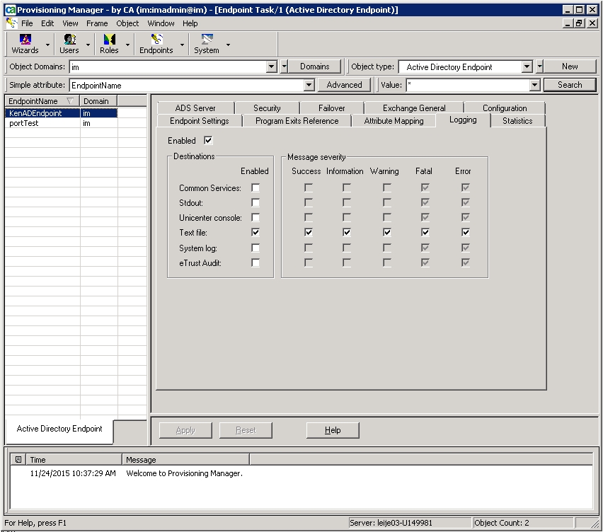\CA\Identity Manager\Provisioning Server\logs\ADS\.