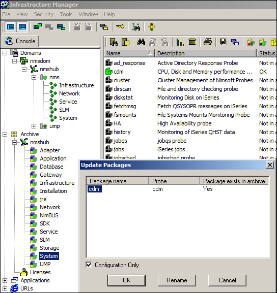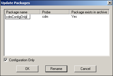 3. Click on rename to provide a new package name so that the operation does not replace the original probe package.