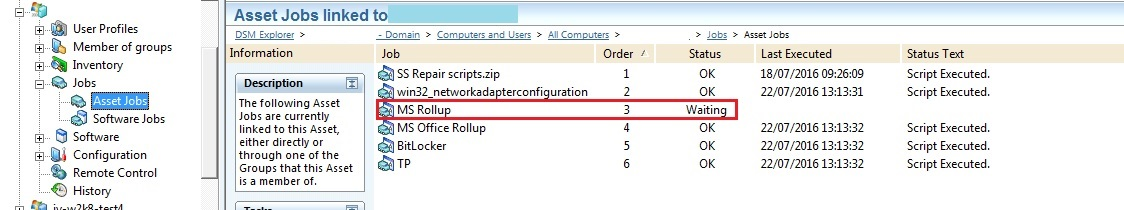 An Asset job remains in status Waiting for a lot of computers. It is not executed by AM Agent.