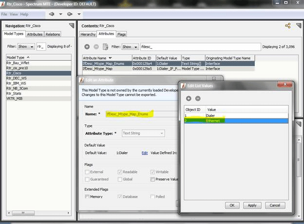 The first two options can be changed while Spectrum is running and are set on a per model basis. The last two options can be changed only with the Model Type Editor (MTE) and the SpectroSERVER would have to be stopped. The attributes controlling the last option are shared Spectrum attributes and they will apply to all models of a particular model type.