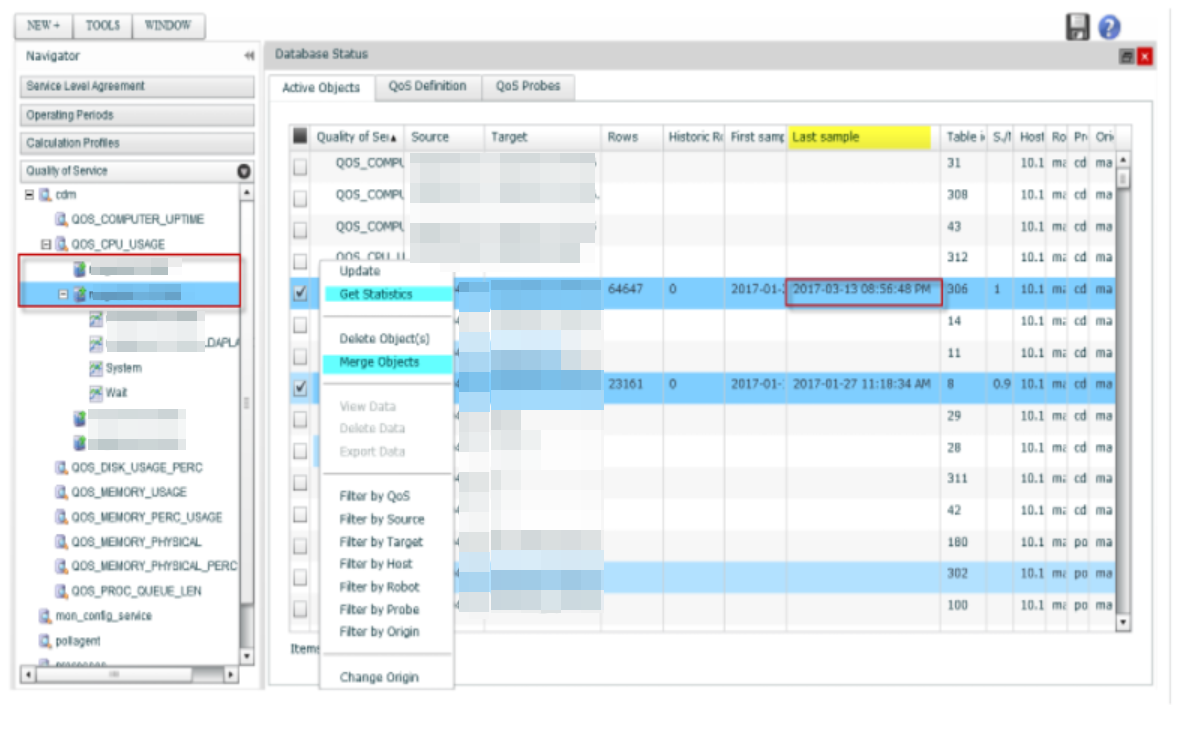 - You can check the QOS data first that you are considering merging by hovering in the QoS column and selecting the black arrow and choosing 'Get Statistics' while you have the QoS rows selected via the checkbox as shown above.
