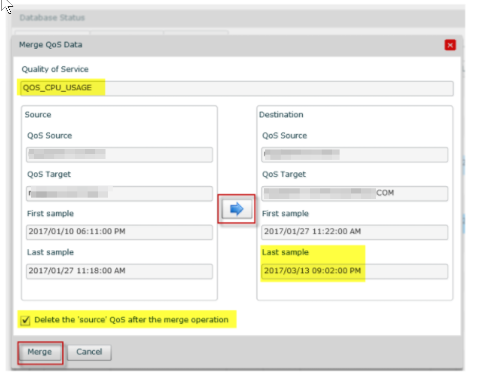 SLM > TOOLS > Database Status > select the metrics to merge > pick the direction and if you want to delete the merge from data