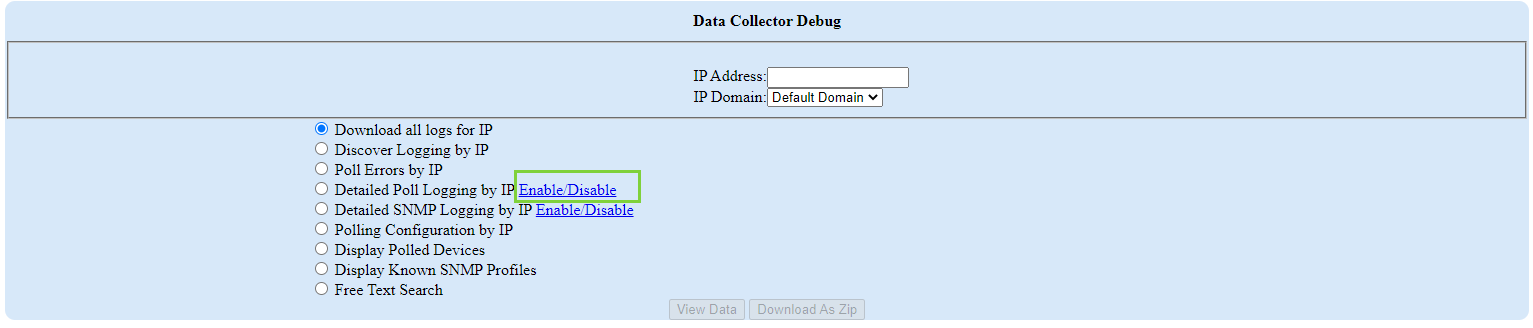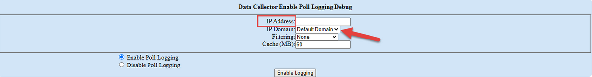 Note that the "Enable Logging" button will remain greyed out until you enter an IP address.