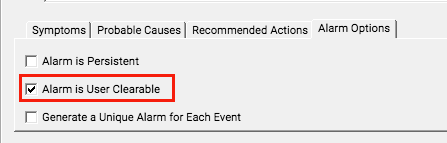 Selecting the "Alarm is User Clearable" Field in Event Configuration Editor will only apply to new alarms that come into OneClick and not existing alarms.