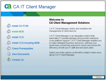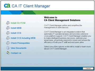To continue with the ITCM installation re-launch the install media and select "Install CA ITCM".