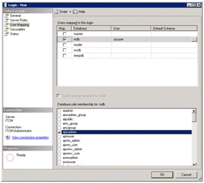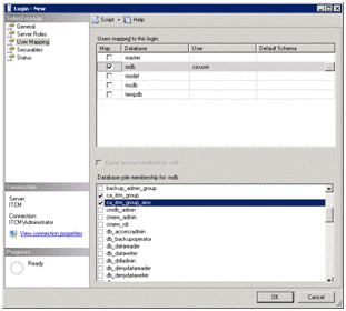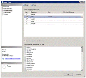 Move on to the "User Mapping" section when creating the new user and select "mdb" and the "Users mapped to this login:"