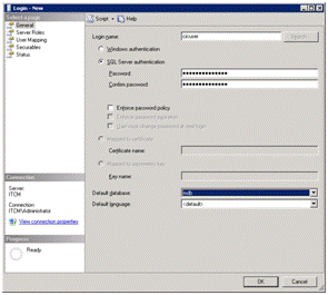 The next step creates the Content Import Client?s SQL User. Open the SQL Management Studio and create a new login.