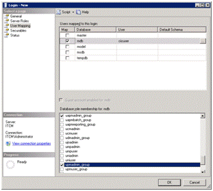The "Database role membership for: mdb" window should then be populated with the current MDB roles installed